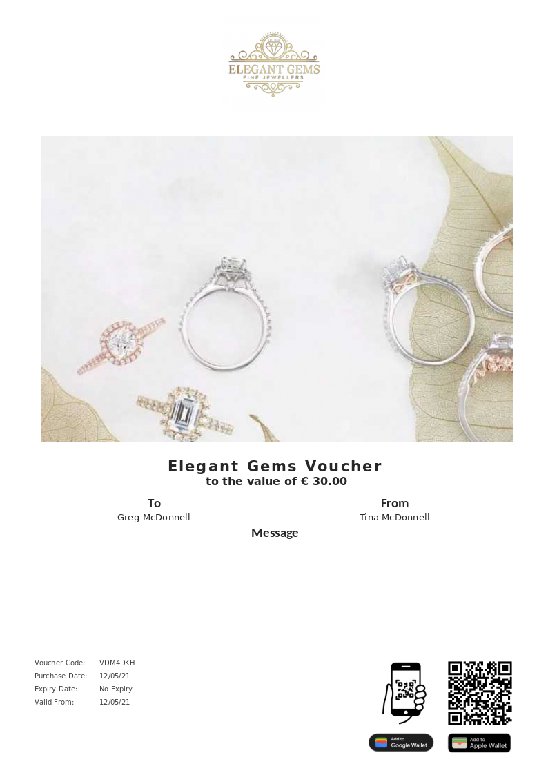 Elegant Gems allows you to purchase instantly printable gift vouchers, special offers and tickets using the Voucher Connect platform.